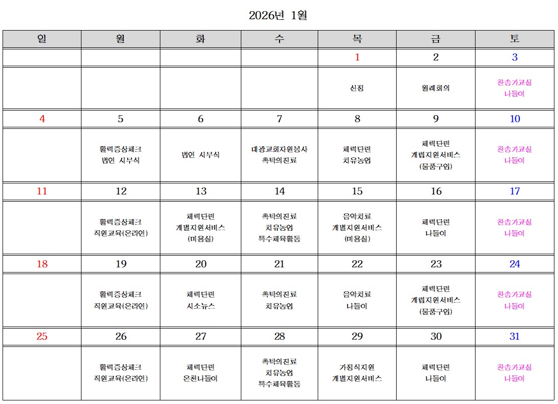 명절, 생일, 시각장애인 기념행사 등을 통해 거주인들의 외로움과 소외감을 해소하고 활력을 불어넣어 즐거운 생활을 할 수 있도록 지원함.
